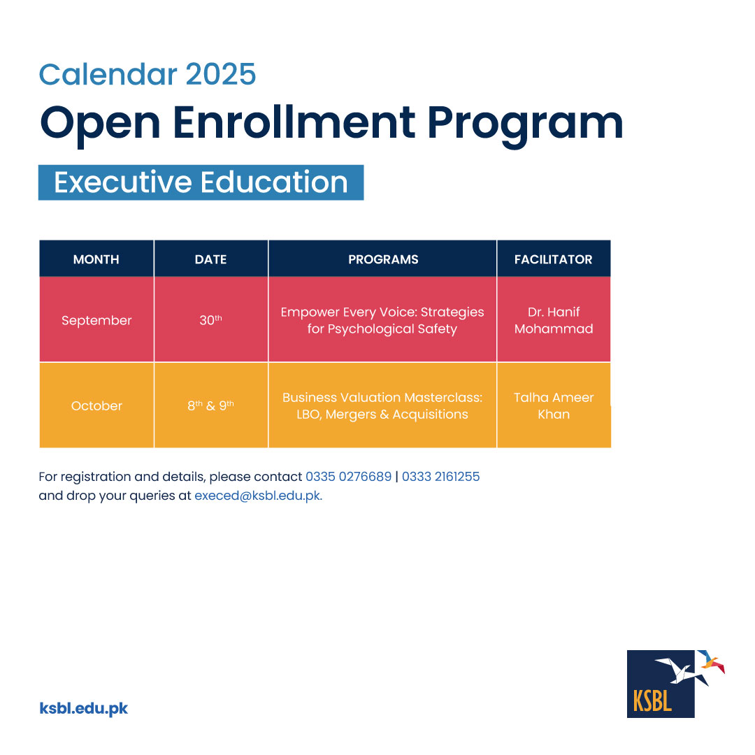 At Karachi School of Business & Leadership (KSBL), our Open Enrollment Programs are crafted to equip professionals with the critical skills, strategic insight, and practical tools needed to navigate today’s complex business environment.